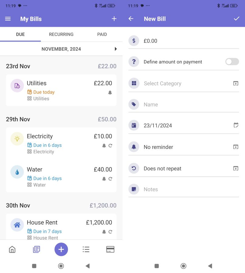 A mobile-native application for tracking recurring bills with push notifications and extensive customization options.